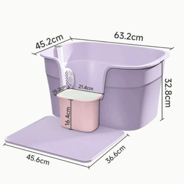 Caja de arena para gatos de cara alta con pared interior lisa, estructura simple, sujeción cómoda para facilitar el movimiento, fácil de limpiar y reutilizable.